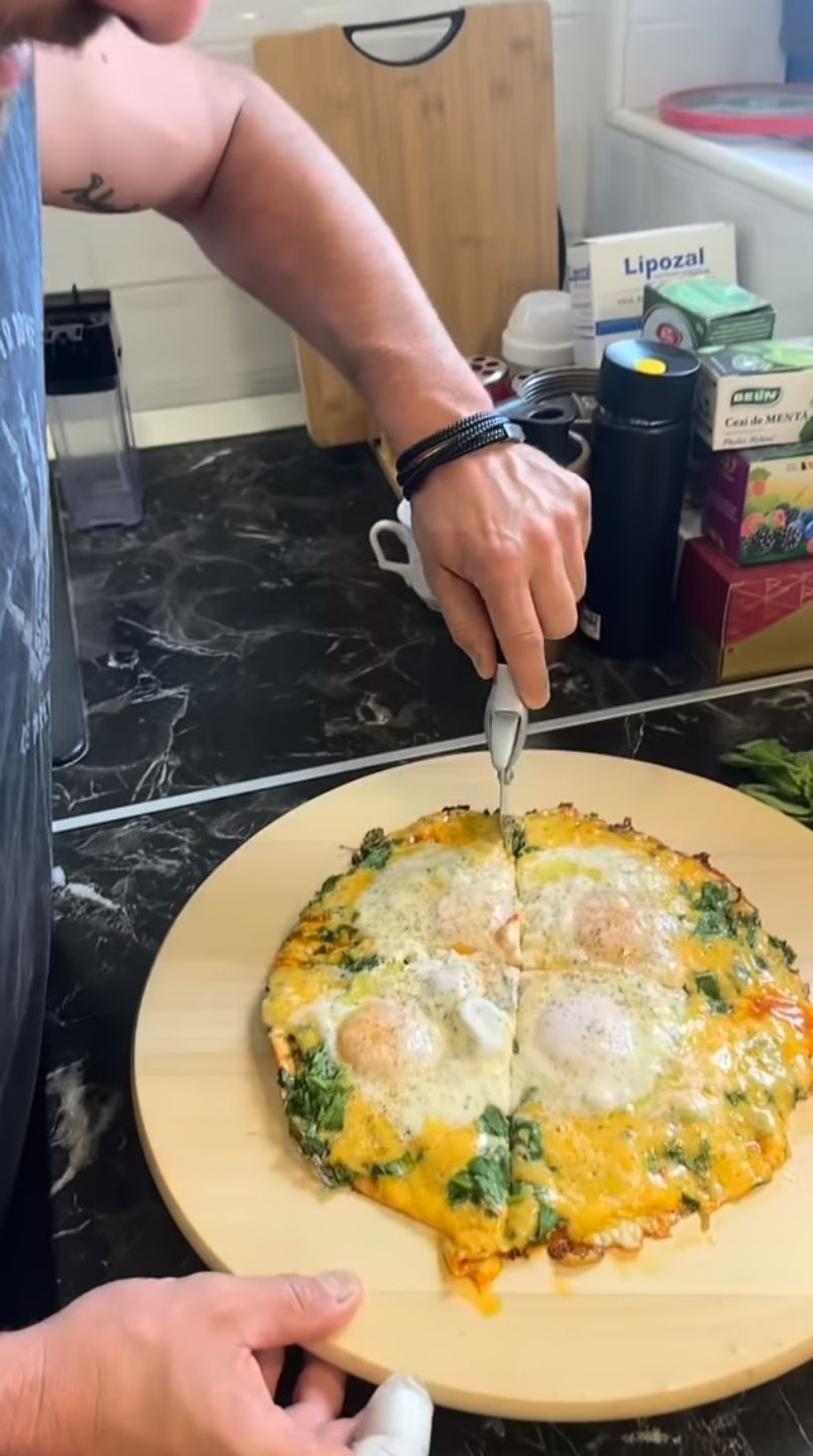 Tavi Clonda: „Dragilor, azi a venit rândul meu să gătesc pentru Gabriela, un fel de mic dejun târziu. I-am gătit lipie crocantă cu ou și cu mai mute chestii. Hai să vedeți cum am făcut-o. Acum ne-am trezit, acum îi fac ceva de mâncare.(...) Arată foarte bine.”