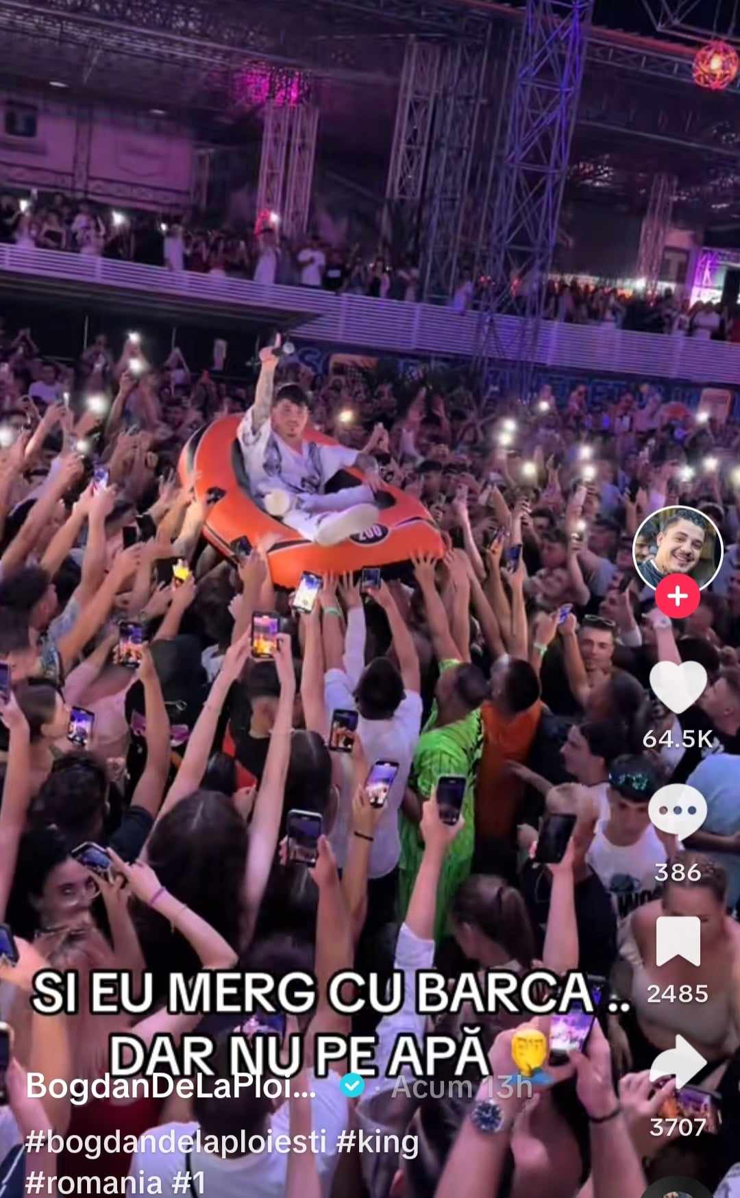 De data aceasta, artistul și-a surprins fanii exact ca în filme. S-a lăsat plimbat pe barcă, însă nu în apă, ci pe brațele celor prezenți la concert. Ei bine, nu s-a putut abține și a postat un videoclip chiar pe contul său de Tik-Tok, unde oamenii au reacționat imediat cu zeci de comentarii.