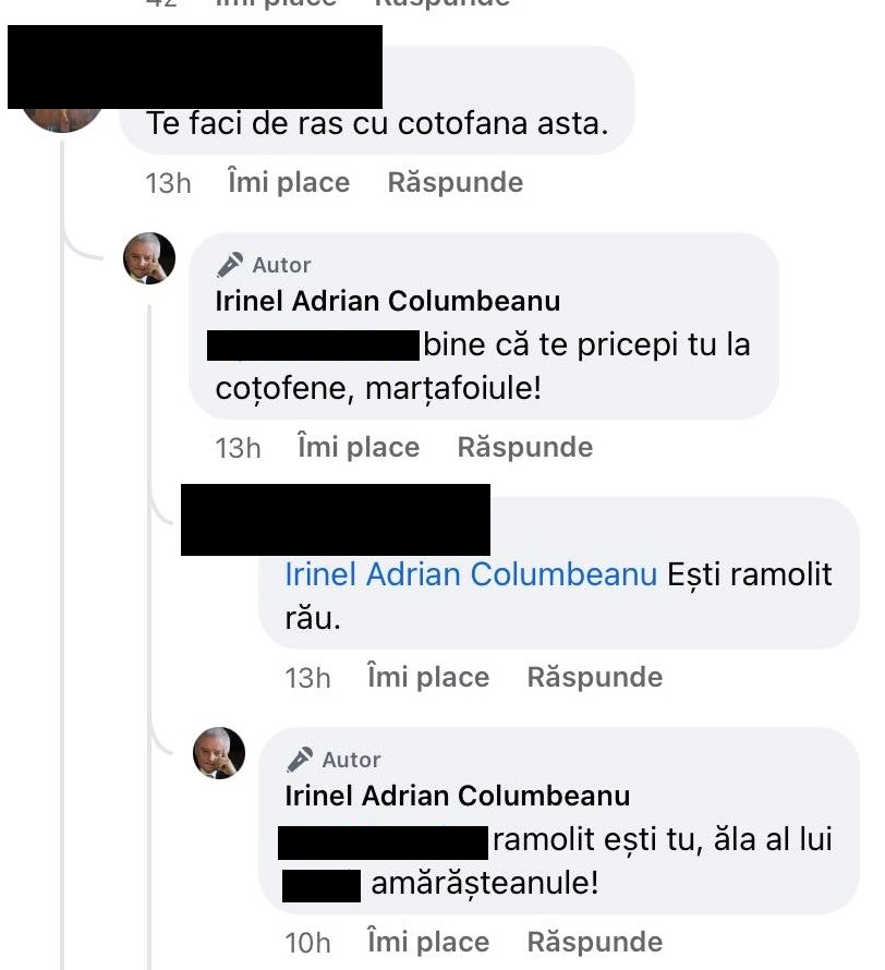 Irinel Columbeanu: Ramolit ești tu,(...) amărășteanule!”, a fost schimbul de jigniri pe care Irinel Columbeanu l-a avut cu un internaut.