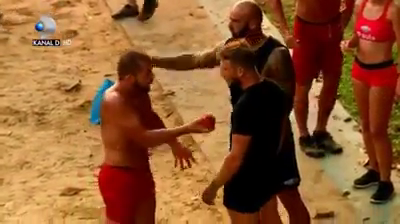 Tensiune la Exatlon, între Faimoşi şi Războinici. Joi, în prima ediţie Exatlon România de săptămâna aceasta, Mirel sare la Ionuţ Jaguarul la finalul unei probe.