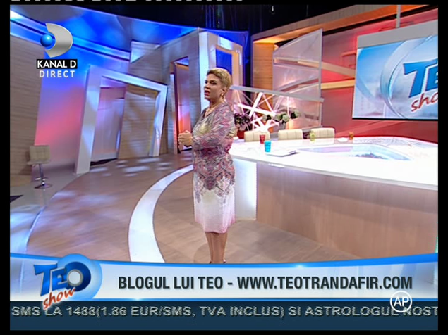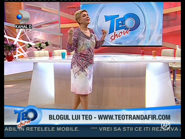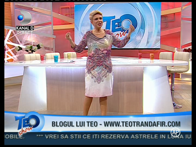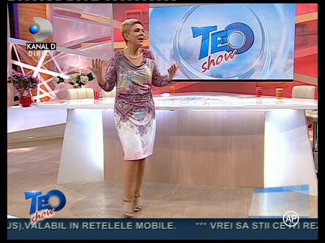 Teo Trandafir a slabit foarte mult dupa ce la sfarsitul anului a recurs la o operatie de micsorare a stomacului. Silueta ei este deja demna de invidiat. Vedeta Kanal D s-a imbracat intr-o rochie superba la emisiunea ei de astazi si a fost admirata de toti invitatii si telespectatorii.