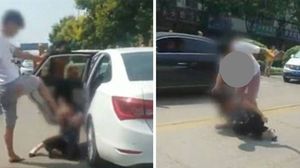 Imaginile şocante în care femeia este dată cu capul de o maşină şi călcată pe cap de tânăr au fost publicate pe internet.