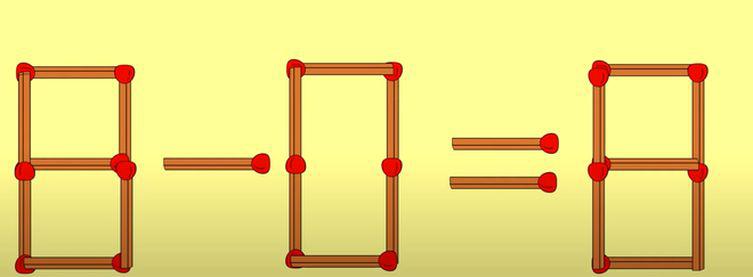 Așa că ia un chibrit de semnul+ pe care îl transformi în-, adaugă-l în mijlocul lui 0, astfel vei avea 8-0=8.