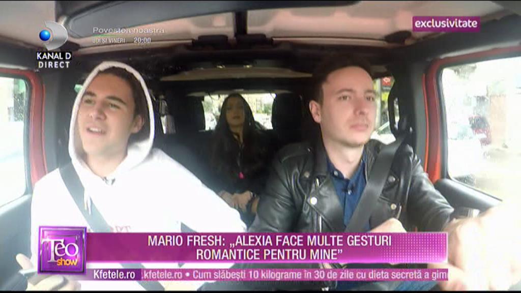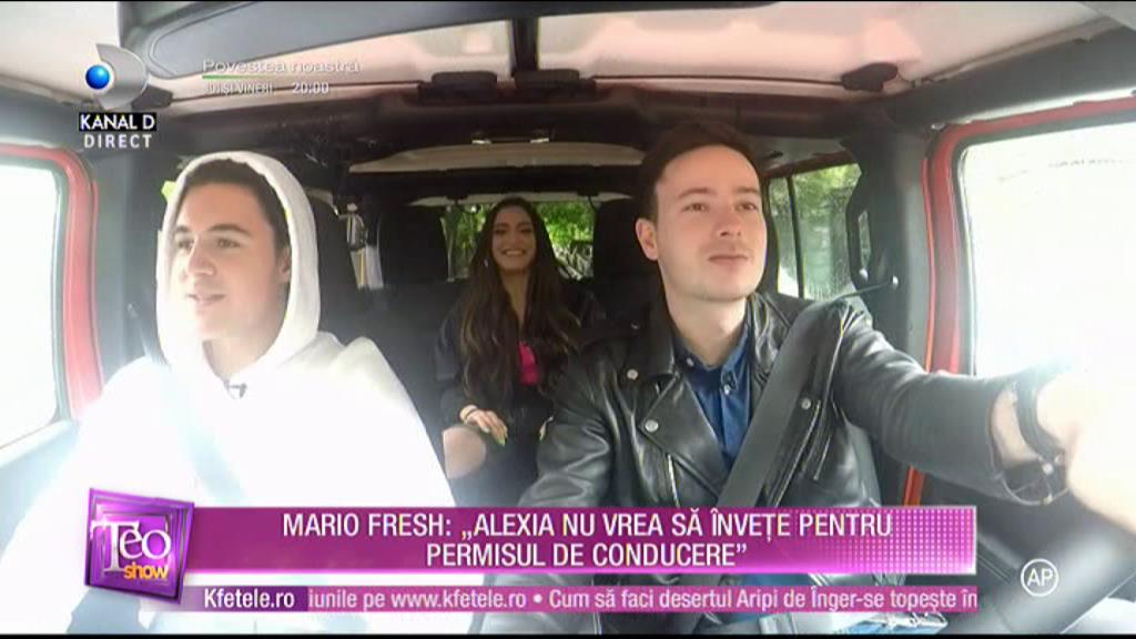 Alexia, fiica Andreei Esca, şi iubitul ei, fostul Faimos Mario Fresh, au stat de vorbă cu Sergiu, au ascultat muzică în maşină şi au făcut dezvăluiri din relaţia lor care durează de aproape trei ani.