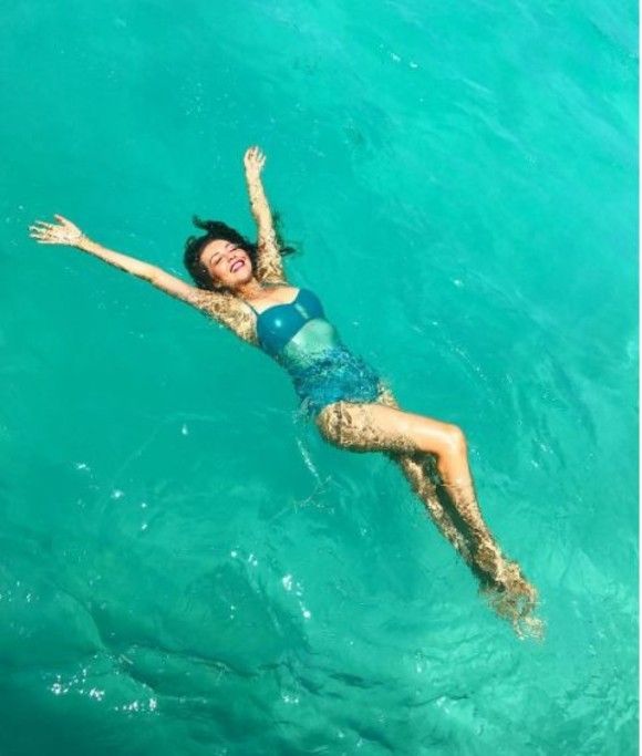 Celebra actriţă de telenovele a atras numeroase comentarii, iar fanii i-au putut admira trupul în toată splendoarea, întrucât ea stă întinsă, în piscină.