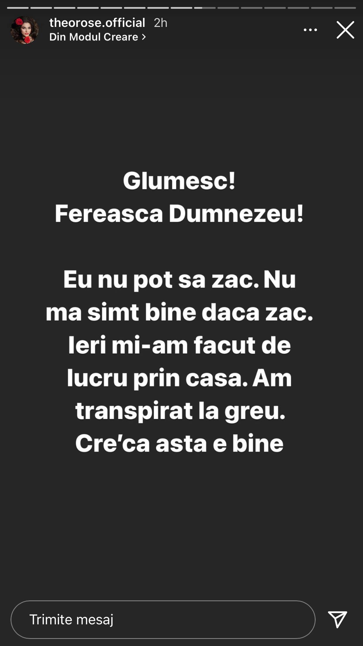 Theo Rose încearcă să ajungă la cât mai multe evenimente, să-i încânte pe fanii ei și să le ajungă la suflet cu piesele pe care le lansează. De fiecare dată reușește acest lucru, însă probleme de sănătate își mai fac apariția din când în când. Din nou, după o perioadă încărcată, cu multe evenimente, Theo are nevoie de o pauză, să se odihnească. Din ce a povestit, pe contul ei de Instagram, cântăreața pare a fi puțin răcită și tocmai din acest motiv și-a luat și măsurile de precauție.