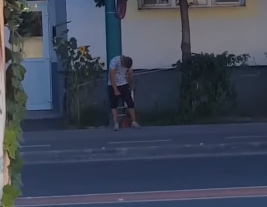 Se poate observa în imaginile de mai jos că tânărul se află sub influența substanțelor psihotrope și încearcă, într-un fel, să se deplaseze.