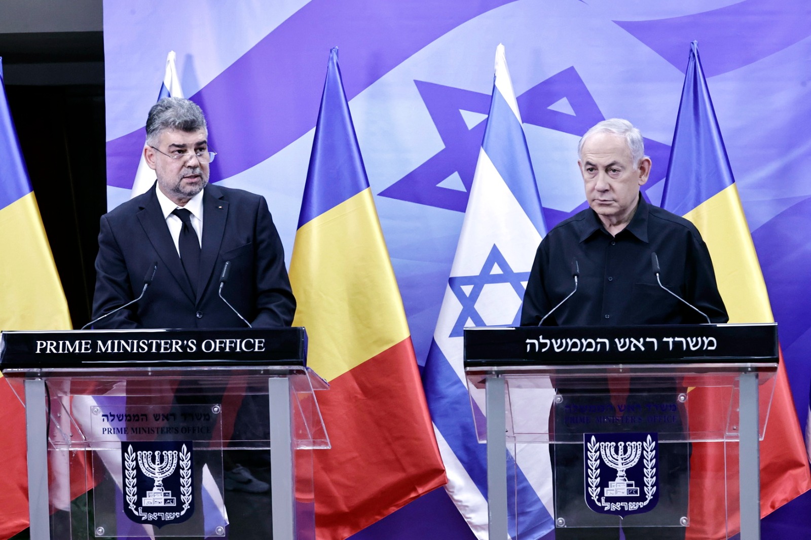 „Am decis să vin astăzi în Israel deoarece în astfel de momente dificile precum cele trăite în prezent de poporul israelian, partenerii şi prietenii trebuie să îşi demonstreze solidaritatea (…) Societatea românească, comunitatea de israelieni din România şi cea de români din Israel deplâng, alături de dvs, domnule prim-ministru, victimele nevinovate, femei, copii, tineri în floarea vârstei în urma atacurilor teroriste declanșate de Hamas”, a spus premierul Marcel Ciolacu, în timpul conferinței de presă susținută alături de premierul israelian Benjamin Netanyahu.