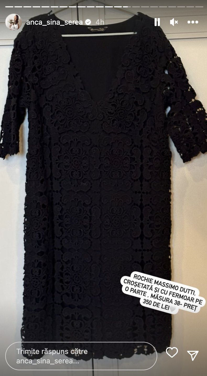 „La sugestiile voastre, am hotărât să organizez aici un shop my wardrobe: voi posta câte 15 articole zilnic, unele cu etichetă, altele purtate o singură dată. Livrările se vor face prin curier și tranzacțiile prin transfer bancar. Găsiți toate detaliile aici pe stories mărimi și prețul și după 24h în secțiunea de repere. Sper din tot sufletul să vă placă și să le purtați cu drag!”,