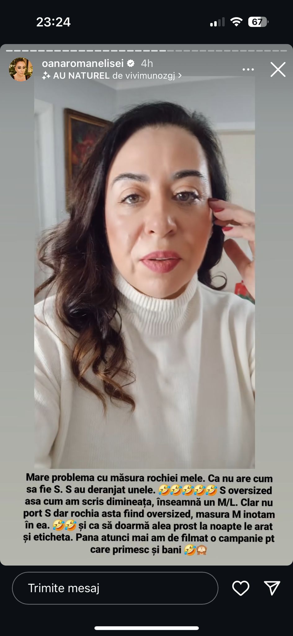 Și nu doar că și-a spus problema în online, dar, ca de fiecare dată, Oana Roman a venit și cu un sfat pentru cei care o urmăresc.