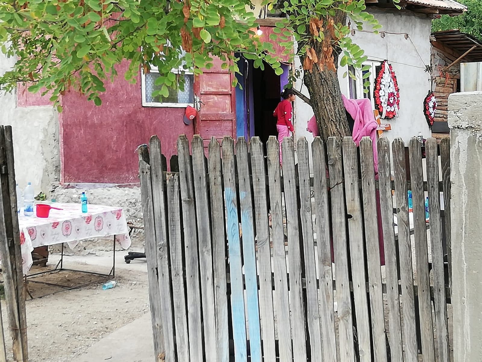 În fața casei fetiței ucise din Dâmbovița a fost pusă o icoană, iar în geam o coroană din flori albe și roși
