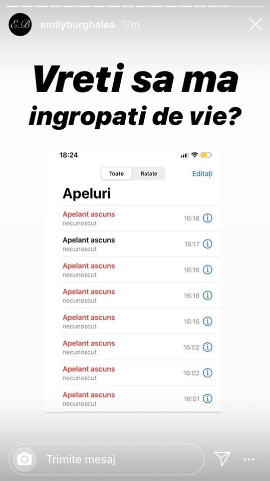Emily Burghelea a mărturisit pe contul ei de Instagram că după ce și-a anunțat demisia a primit o serie de apeluri cu numărul ascuns. La unul dintre ele a răspuns, iar ce au putut să-i audă urechile întrece orice imaginație.