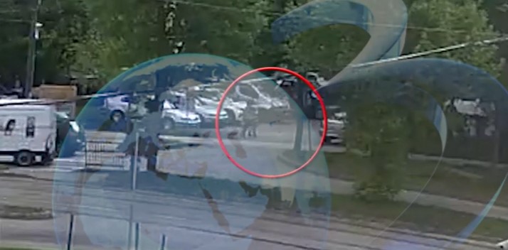 În jurul orei 09:13, mama coboară din vehicul și le deschide portiera și celor doi copii, care stăteau pe bancheta din spate, iar mai apoi, cu ei de mână, merge către imobilul unde s-a petrecut tragedia.