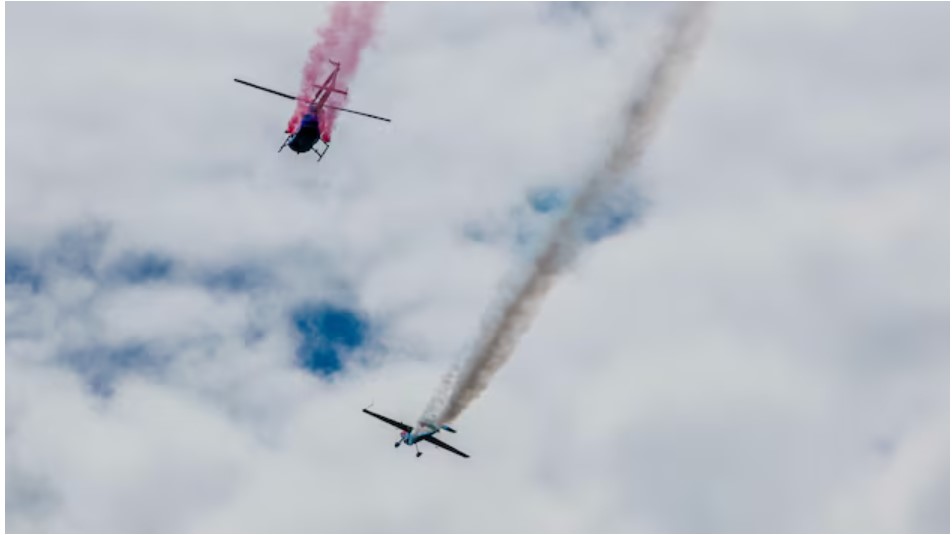 Mai multe avioane Flying Bulls brăzdat cerul cu bucle de fum colorate, pe fundalul spectaculos al muntelui Untersberg, conform Kronen Zeitung.