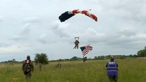La 75 de ani de la Debarcarea din Normandia, veteranul american Tom Rice, 97 de ani, a reeditat saltul din 6 iunie 1944, cu o parașută în culorile americane, în aclamațiile unei mulțimi de oameni, scrie AFP.
