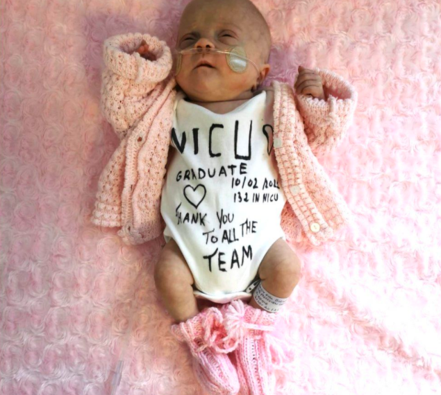 Sofia s-a născut la 22 de săptămâni și patru zile, pe 2 octombrie, iar cadrele medicale i-au dat doar 10% șanse de supraviețuire. Părinții și micuța au părăsit spitalul pe 10 februarie, după ce au trecut prin “cele mai îngrozitoare 132 de zile din viața lor”.
