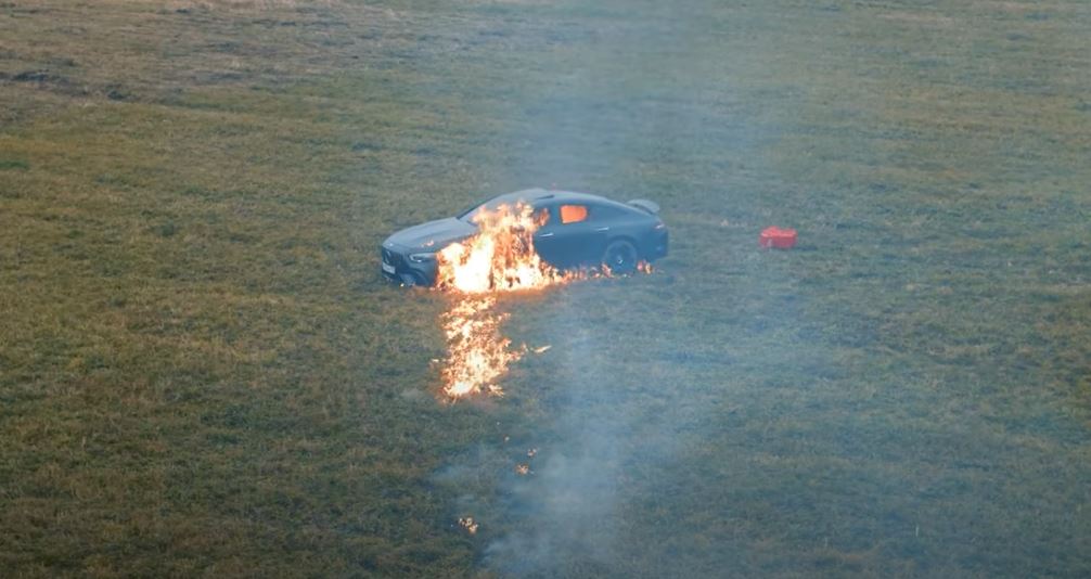 Mașina a ars complet, iar pentru a nu exista nici un dubiu că totul este real, bloggerul, ajutat de echipa sa, a filmat cu mai multe camere, chiar și cu o dronă. La final, mașina s-a făcut scrum! În tot acest timp, bloggerul a stat cu spatele la masina incendiata si a mancat cârnați facuți pe grătar.