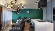 “Aflat intr-un imobil finalizat in august 2017, apartamentul beneficiaza de compartimentare si amenajare realizate de un arhitect specializat pentru a crea spatii functionale si coerente intr-o ambianta calda si primitoare. Finisajele folosite sunt de cea mai buna calitate, utilizandu-se lemn masiv, piatra naturala si o atentie deosebita asupra executiei detaliilor. Tot mobilierul este realizat pe comanda pentru o eficientizare cat mai buna a spatiilor, spre exemplu exista 10 metri liniari de depozitari incastrate.