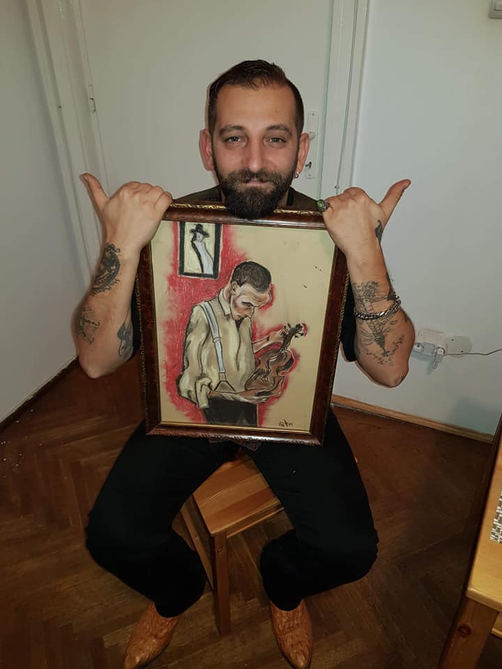 Astfel, în plan secund apare un rrom cu o coroană pe cap, aceasta având lumânări în colţurile sale, iar pe coroană se află catedrala Notre Dame, cuprinsă de flăcări. Lucrarea se numeşte „Esmeralda”, după personajul din prim-plan. (vezi care este legătura incredibilă dintre catedrala Notre Dame şi o biserică din Bucureşti)