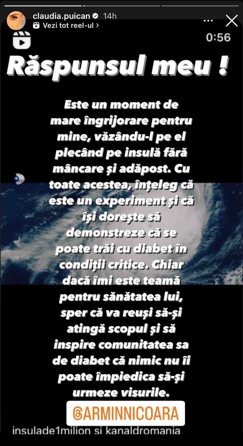 a spus Claudia Puican, pe pagina sa de Instagram.Mesajul transmis de Claudia Puican în mediul online