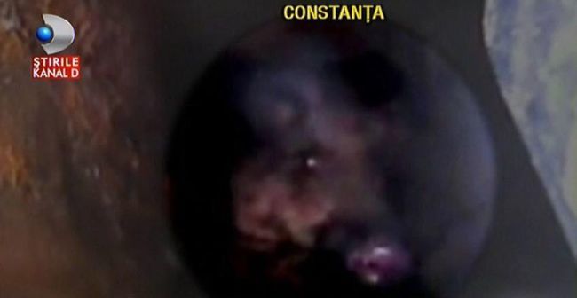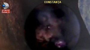 Sunt imagini cu un porc mistret blocat intr-o canalizare din Constanta. Degeaba incearca angajatii regiei de apa sa-l captureze. Canalul e atat de adanc, incat a putut fi identificat doar cu o camera de vederi speciala.