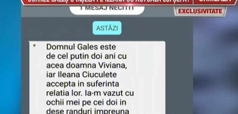 "Domnul Gales este de cel putin doi ani cu acea doamna Viviana, iar Ileana Ciuculete accepta in suferinta relatia lor. I-am vazut cu ochii mei pe cei doi in dese randuri impreuna", au fost informatiile care au aparut.