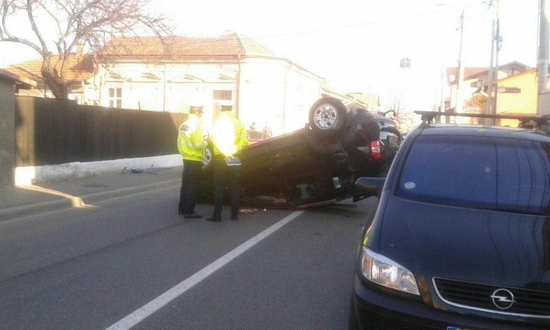 Un primar a facut accident! S-a rasturnat cu masina, dupa ce a fost lovit de un alt automobil