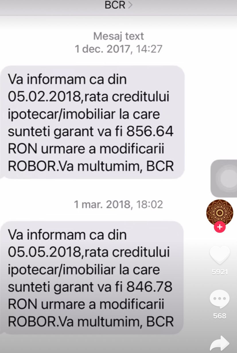 Mai precis, acesta a ajuns să plătească, în prezent, suma de 1203,36 lei. Așadar, românul a făcut o postare pe TikTok, cu mesajele primite din partea băncii, acolo unde era exemplificată clar creșterea ratelor lunare, pe parcursul celor cinci ani.
