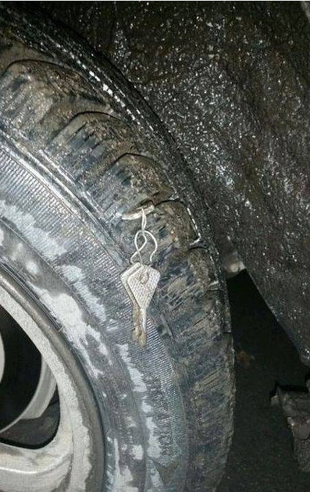 Un tip mai putin norocos si-a pierdut cheile, iar un alt tip si mai putin norocos le-a gasit in timp ce se afla la volan. Cheile, aflate pe sosea, i-au spart barbatului cauciucul de la masina si au ramas infipte acolo. Cu siguranta cel care le-a pierdut nu le-a mai recuperat, dar barbatul cu masina a petrecut un timp pretios la vulcanizare.