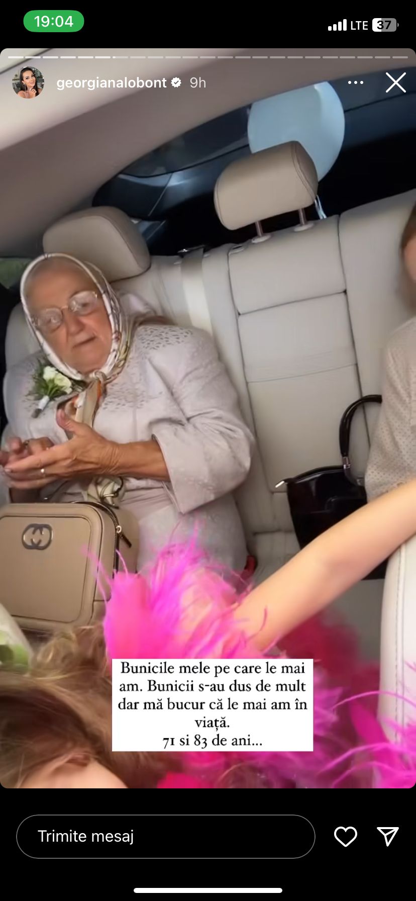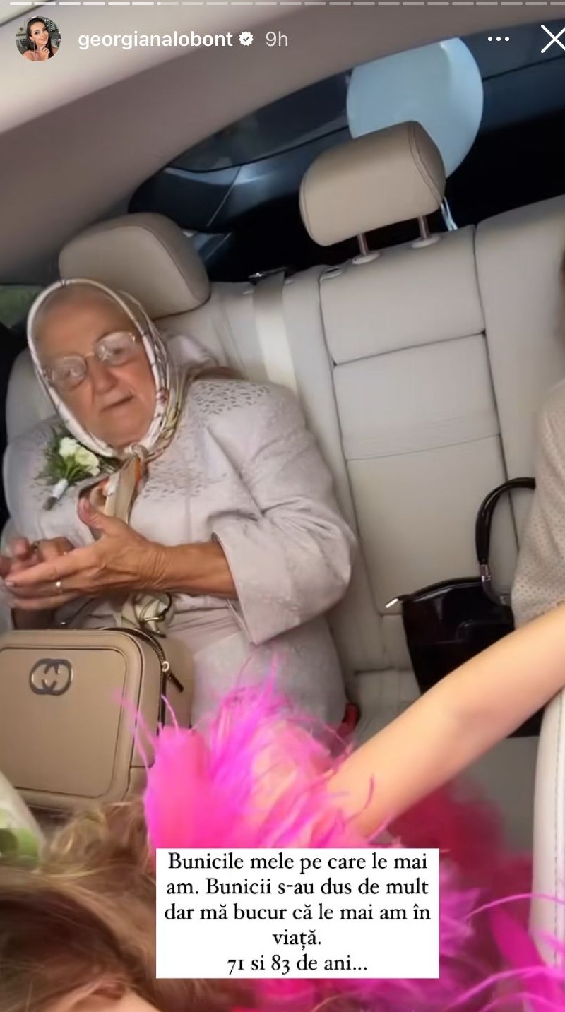 Astăzi este o zi mare în familia Georgianei Lobonț, pentru că sora sa, Ioana, a ajuns în fața altarului alături de alesul inimii sale. Buna dispoziție și fericirea sunt la cote maxime, pentru că, după mult timp, întreaga familie, de la mic la mare, s-a strâns la un loc. Unele dintre cele mai dragi persoane ale artistei sunt, fără urmă de îndoială, cele două bunici ale sale, în vârstă de 71 și 83 de ani, pe care astăzi a avut ocazia să le revadă după mult timp. Cântăreața a postat în mediul online o serie de imagini cu acestea, în timp ce se aflau în mașină, moment în care una dintre bunicuțe a „certat-o” pe Georgiana Lobonț, într-un mod neașteptat. Iată despre ce este vorba!