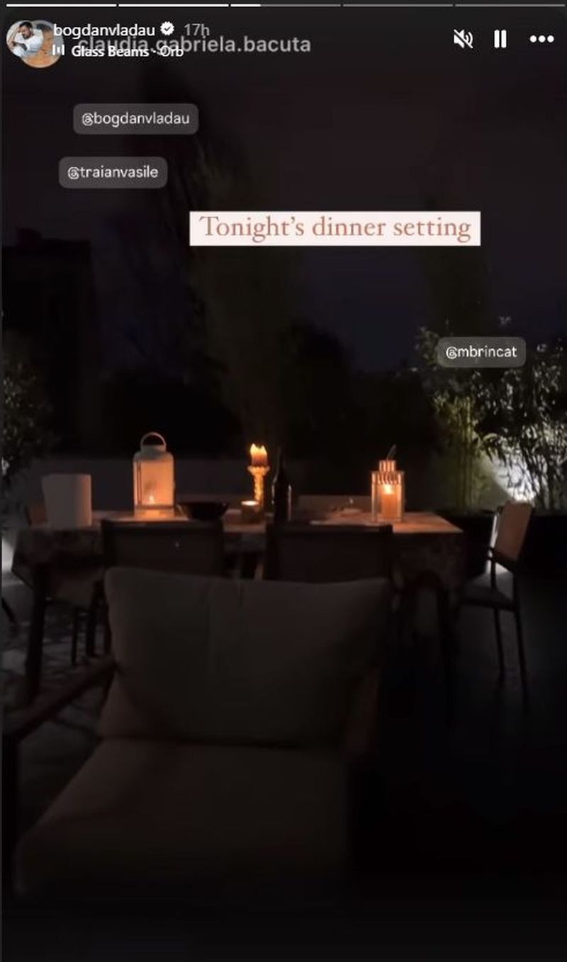 În noaptea dinaintea marelui anunț, în care Gina Chirilă a făcut o postare prin care și-a înștiințat fanii că s-a separat de soțul ei, Bogdan Vlădău se afla într-un loc aparte, însoțit. În postarea sa, se vede că este la o cină specială, relaxantă, la malul mării, în Constanța.