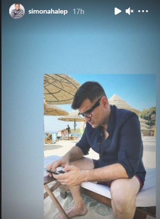 Îmbrăcat lejer și cu ochelari de vedere, soțul Simonei este concentrat la telefon în imaginea postată de campioană. El nu are cont pe rețelele de socializare, însă soția sa a distribuit imaginea pentru fanii ei.