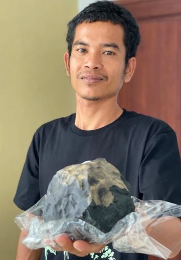 Josua Hutagalung, un indonezian în vârstă de 33 de ani, de meserie tâmplar, lucra la fabricarea unui coşciug în momentul în care o piatră de dimensiunea unei mingi de fotbal i-a căzut pe acoperişul casei. Indonezianul s-a îmbogăţit de pe urma bucăţii de piatră picate din cer.