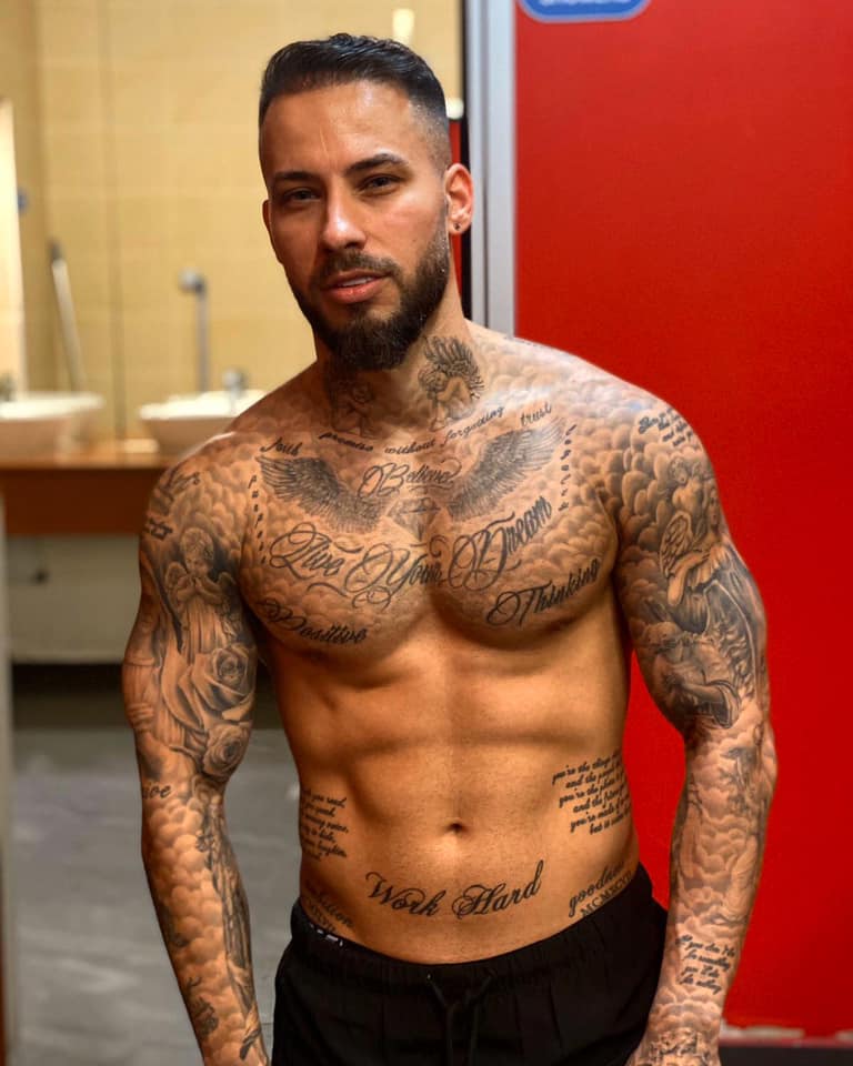 ”Primul meu tatuaj a fost pe antebrațul drept, acolo unde în trecut am suferit o operație și aveam un semn urât. E un înger pentru că m-am gândit că așa șterg tot trecutul meu urât. Așa a început nebunia mea cu tatuajele.