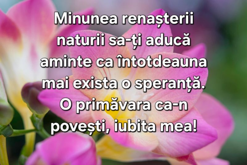 Îți doresc o primăvară minunată, plină de flori și de parfumul dragostei noastre!