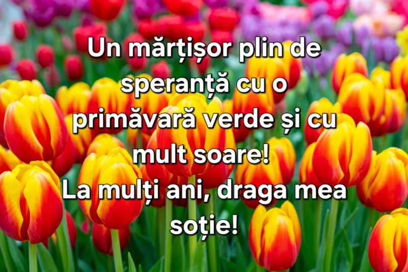Îți trimit cele mai frumoase gânduri de 1 Martie și îți mulțumesc că ești cea mai bună soție! Îți doresc o primăvară plină de fericire și împliniri!