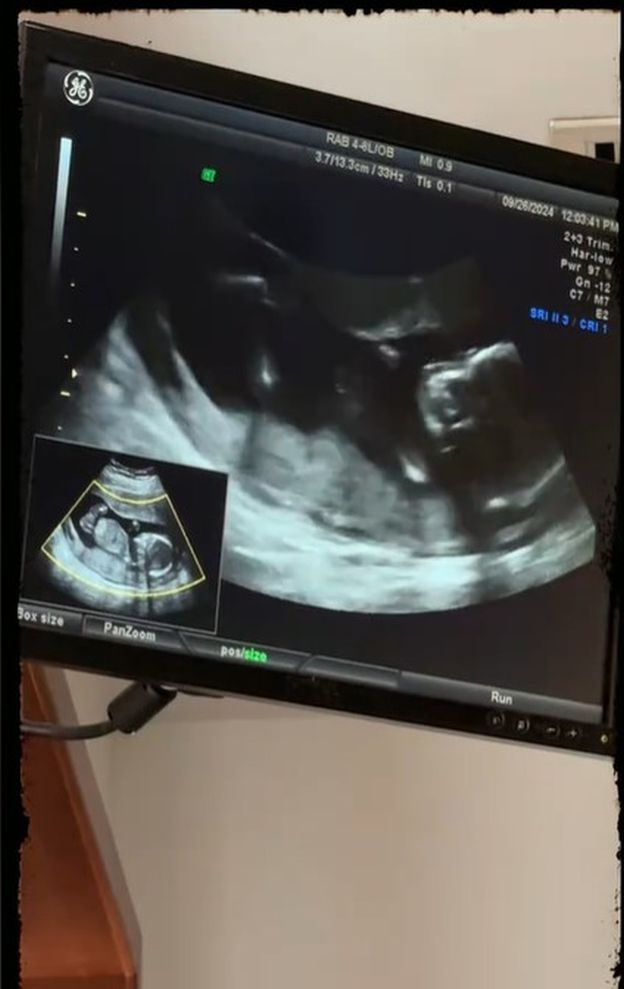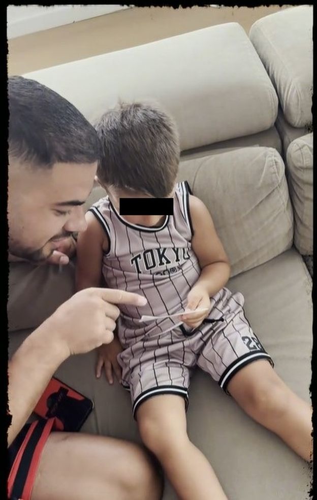 Artistul îi arăta fiului său o ecografie în care se vedea bebelușul încă nenăscut și îi spunea că acolo se află frățiorul său.