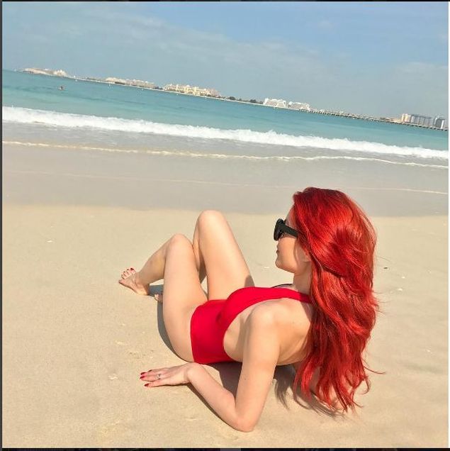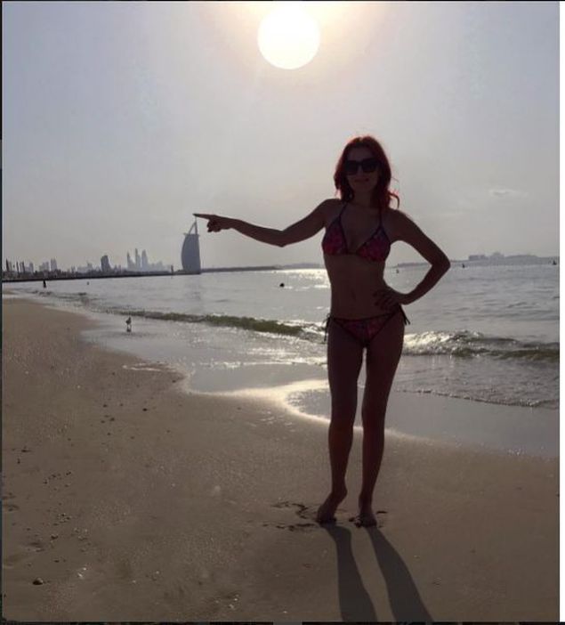 Frumoasa roscata (Uite cum arata mama ei! Zici ca e sora ei mai mare) si-a dorit sa mearga, alaturi de sotul ei, intr-o tara calda si a ales Emiratele Arabe Unite.