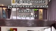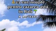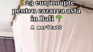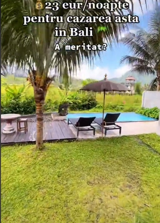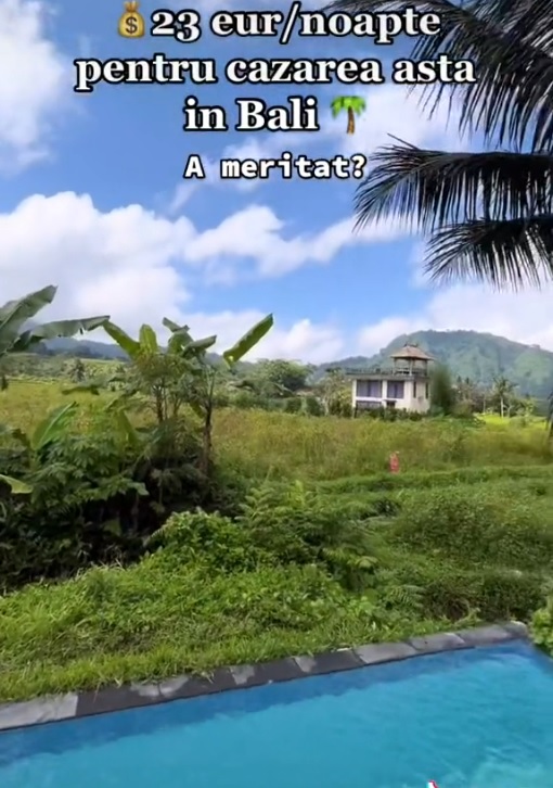 O tânără a fost cazată de curând în Bali, unde a plătit pe cazare un preț la care nu te-ai fi așteptat. Fiind o zonă de lux, o insulă de vis și prețul ar trebui să fie pe măsură, însă mai mult ai plăti în România, la un hotel sau pensiune, plus șezlong și alte cheltuieli. Tânăra a postat pe TikTok că a plătit 23 de euro, adică în jur de 115 lei pe noapte, într-un resort din Bali.