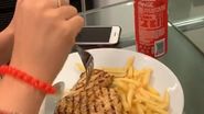 Parcă de când l-a cunoscut pe acesta, Simona este mai pofticioasă ca niciodată...Când vine vorba despre mâncare, desigur! De curând, vigilentul Jador a surprins-o pe protagonista noastră, la machiaj, în timp ce se delecta cu piept de pui, cartofi prăjiţi şi cu o băutură carbogazoasă celebră.