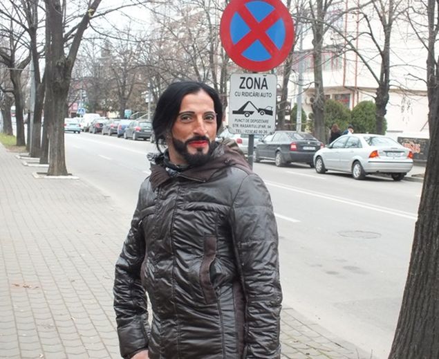 Este travestit, poarta barba, dar isi face buzele cu ruj rosu si a acceptat sa faca o scurta sedinta foto pentru publicatia locala vrancea24.ro.