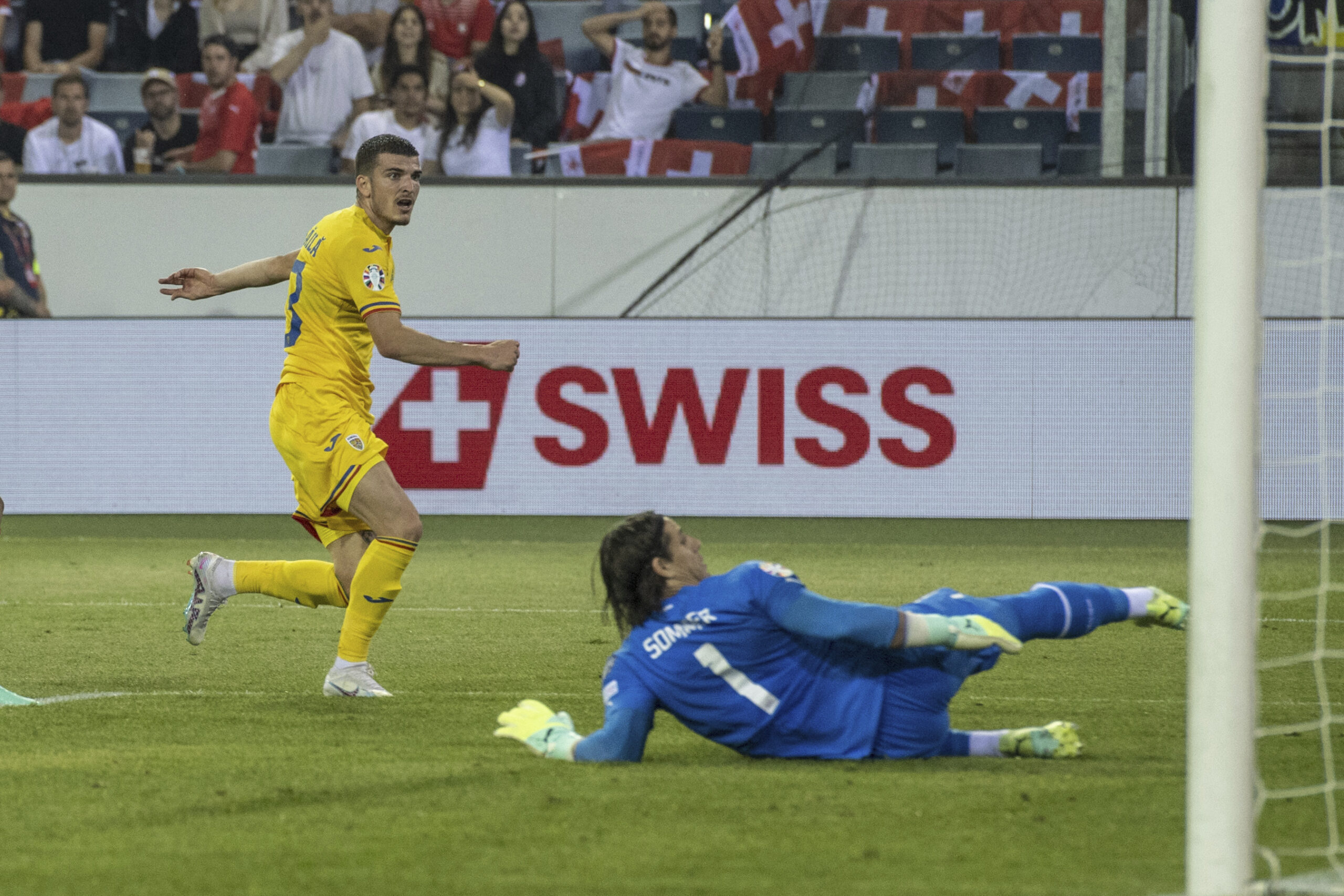 Valentin Mihăilă a schimbat șansele României în drumul spre EURO 2024, după ce a marcat de două ori în meciul cu Elveția, în minutele 89 și 90+2. După cel de-al doilea gol, „eroul de la Lucerna” nu și-a putut gestiona bucuria și a mers în fața sectorului unde se aflau suporterii români, urmând să sară pe gard.