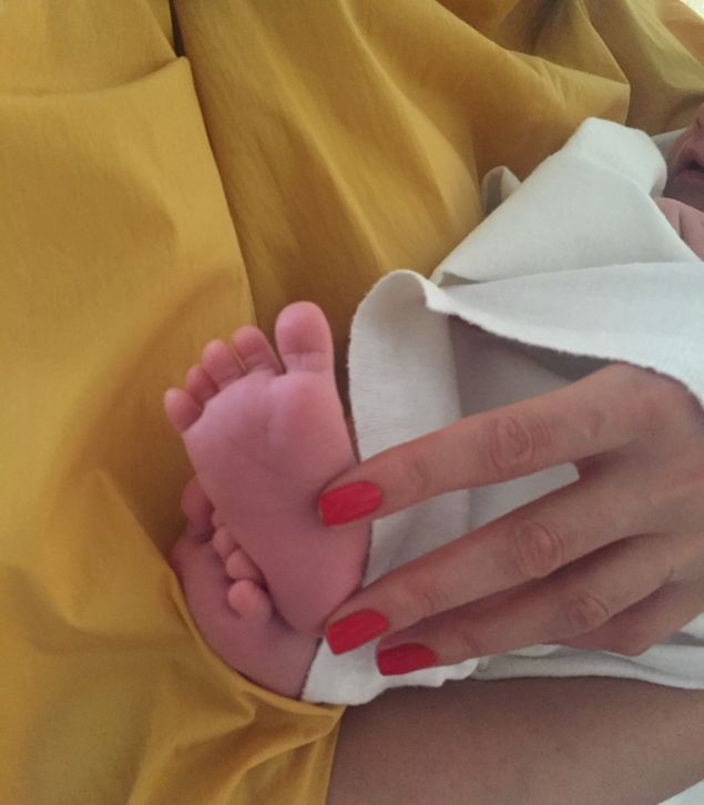 Valentina a publicat, totusi, cateva imagini cu piciorusele micului Milan Cristian. Acestea au aparut pe site-ul Marinei Almasan.
