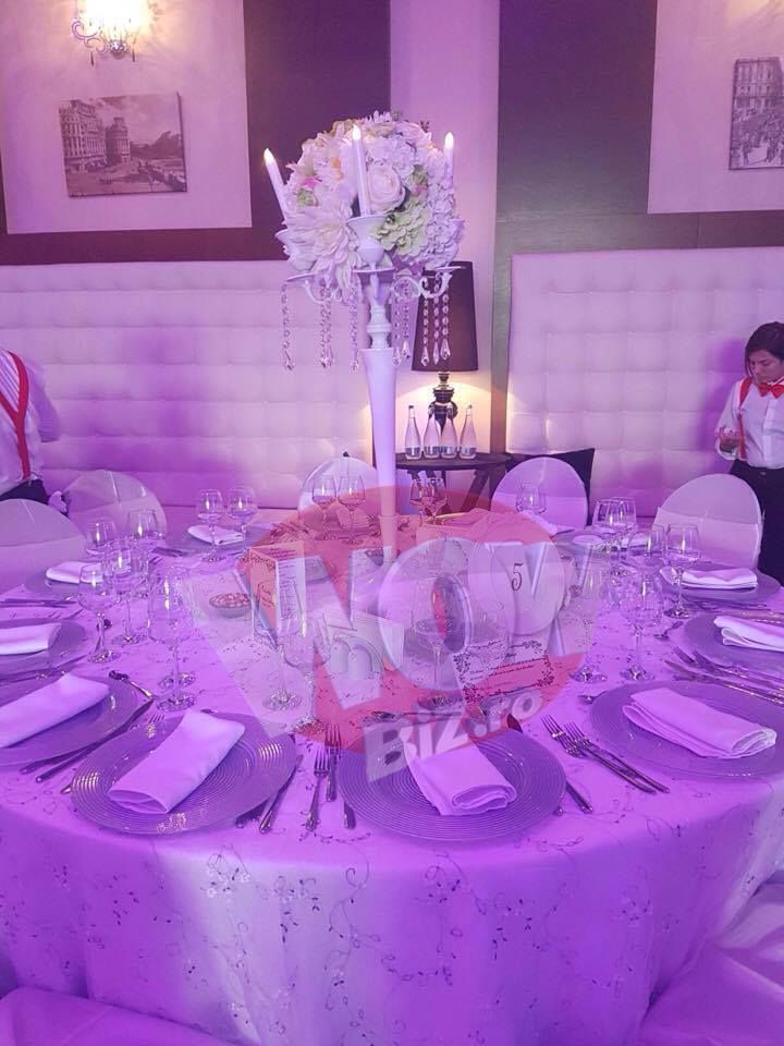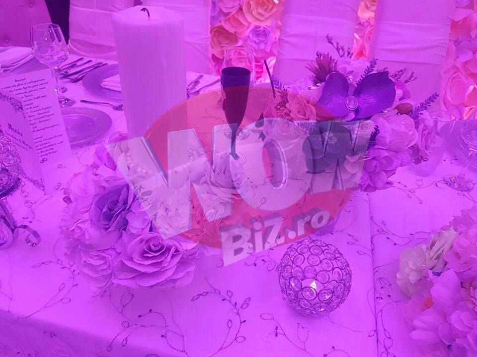 Practic, acesta a fost primul semn care anunta petrecerea fastuoasa ce avea sa urmeze. Cheful de pomina s-a desfasurat la o sala de evenimente de lux din zona de nord a Capitalei, la un salon cu deschidere spre piscina, intreg spatiul aranjat cu stil fiind rezervat acestui eveniment.