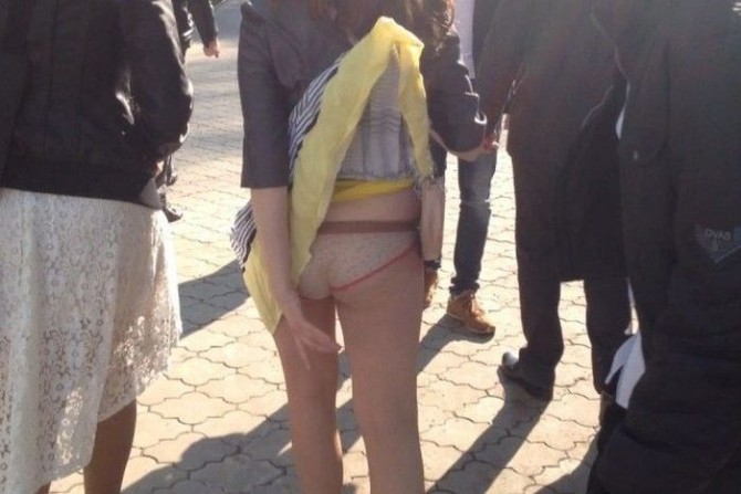 Vantul i-a ridicat fusta, iar ea a intrat in pamant de rusine! Parea o tipa sexy, insa uite ce lenjerie intima purta