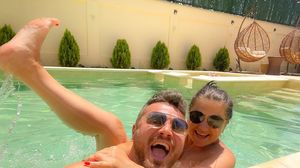 În urmă cu doar câteva momente, Gabriela Cristea și Tavi Clonda s-au pozat din piscina lor proaspăt construită, iar fericirea și entuziasmul li se citește pe chip, căci după mai bine de cinci ani sunt doar ei acasă, fără copii! „Singuri acasă după aproape cinci ani”, au scris cei doi în dreptul imaginilor cu ei.