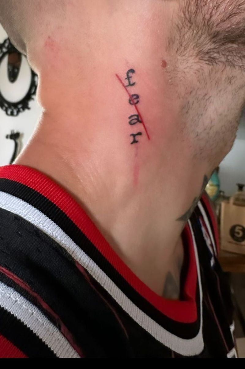 Acum, însă, după speculațiile legate de divorț, Cătălin Bordea a făcut o postare pe Instagram, împărtășind cu fanii faptul că și-a făcut un nou tatuaj, chiar în zona gâtului. Comediantul și-a tatuat cuvântul ”Fear”, care în traducere înseamnă ”Frică”, acesta fiind tăiat de o linie roșie.