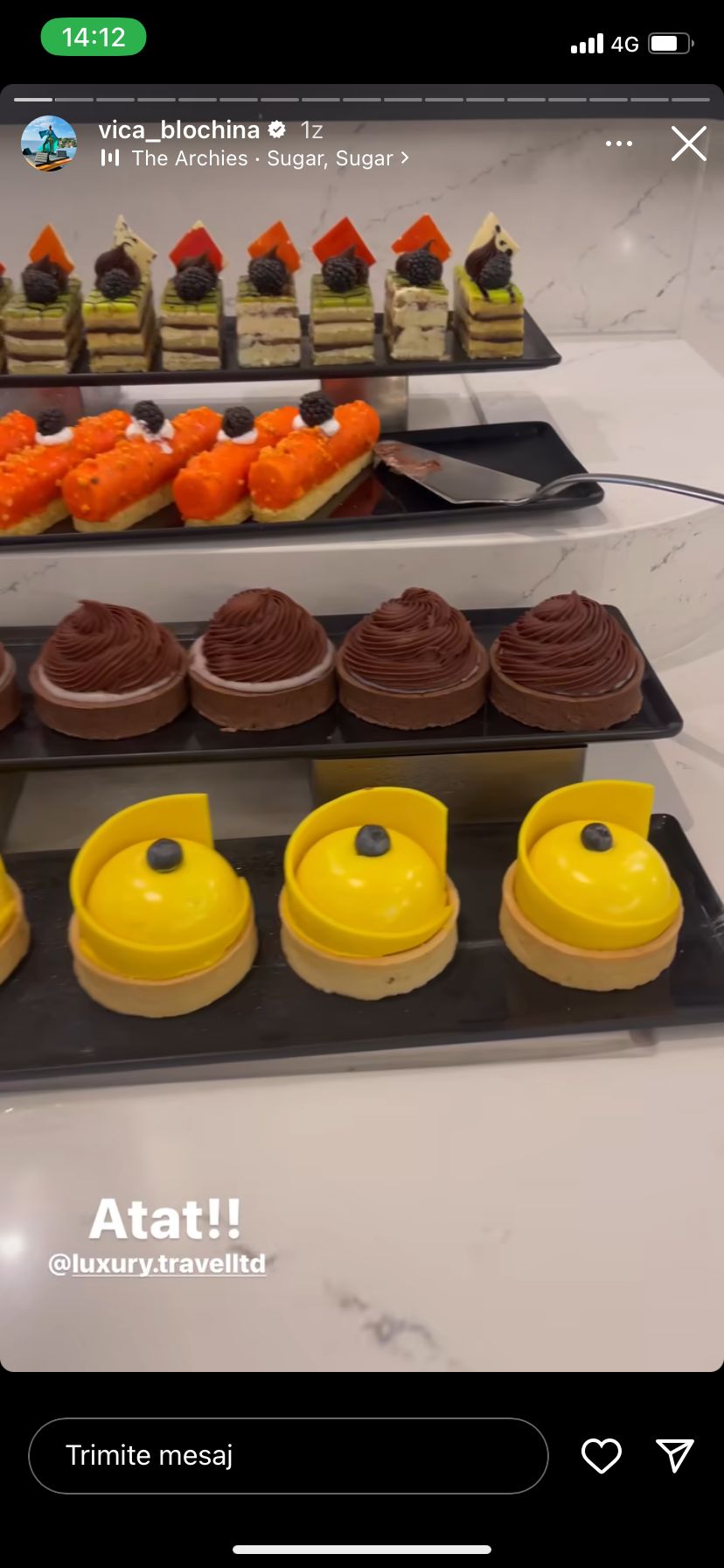„Este extrem de cald, vreau să spun că e foarte cald, 40 și ceva de grade. Sunt niște servicii wow, unii îți șterg ochelarii, alții îți aduc fructe, deci ești ca în paradis, e tot ce îți dorești. Stăm pe ponton pe mare, aici facem plajă, e suportabilă vremea.