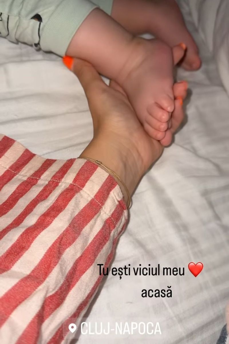 „Tu ești viciul meu”, a scris Vlăduța Lupău, în dreptul unei imagini cu piciorușul băiețelului ei, Iair.