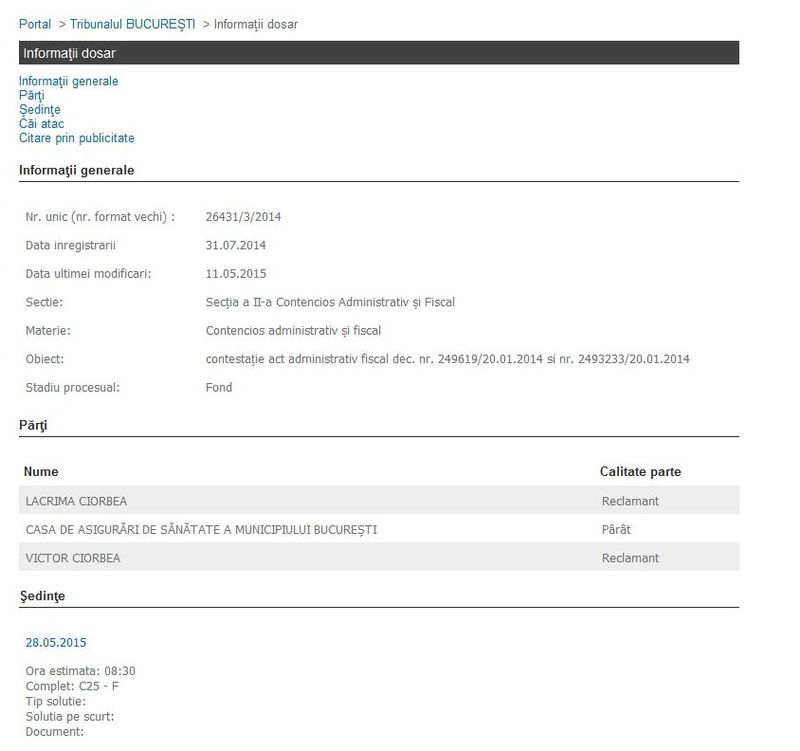 novalueFost prim ministru si primar al Capitalei, in prezent Avocat al Poporului, Victor Ciorbea are langa el, de aproape patru decenii, o femeie puternica, in persoana sotiei Lacrima. Cum consoarta lui Ciorbea este o avocata cu nume, n-a fost nici o problema ca Victor si Lacrima sa dea impreuna in judecata Casa de Asigurari de Sanatate a Municipiului Bucuresti, contestand un act administrativ fiscal. Urmatorul termen in cauza a fost fixat pe 28 mai, la Tribunalul Bucuresti.